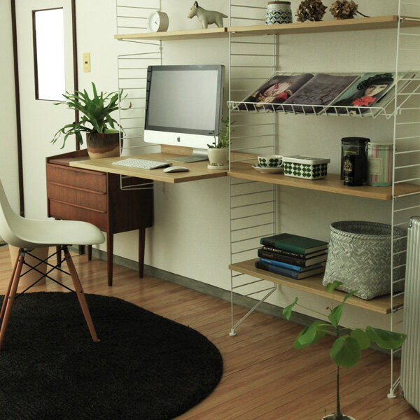 デスク中心のシンプルなシステムを組んでみる? string(ストリング)なら、本当に自分に必要な機能だけを選んで、家具を組み立てる事ができます。