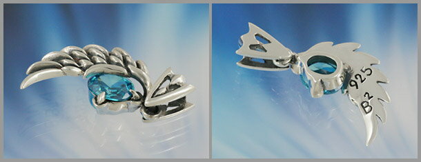 ブルージルコニアをフェザーで包み込むようにデザインされたシルバーペンダントです。