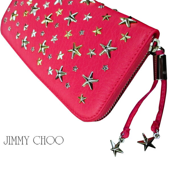 ジミーチュウ Jimmy Choo グッズ ラウンドファスナー 長財布 サイフ スタッズ星 きらきらスワロフスキー 蛍光ピンク ピンク 蛍光カラー FILIPA FUY PINK 71A【送料無料】【smtb-TK】